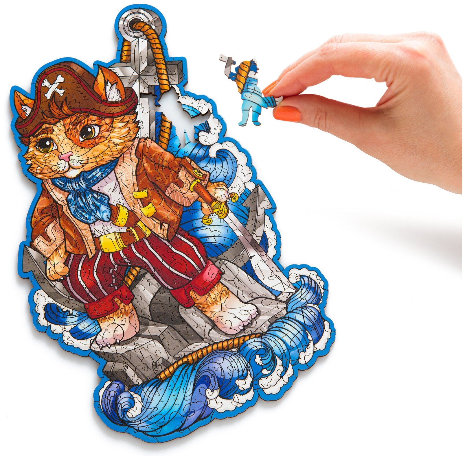 Деревянные пазлы для взрослых и для детей Rugo Кот Пират 17х27 см, 123 детали в виде животных и растений информация: