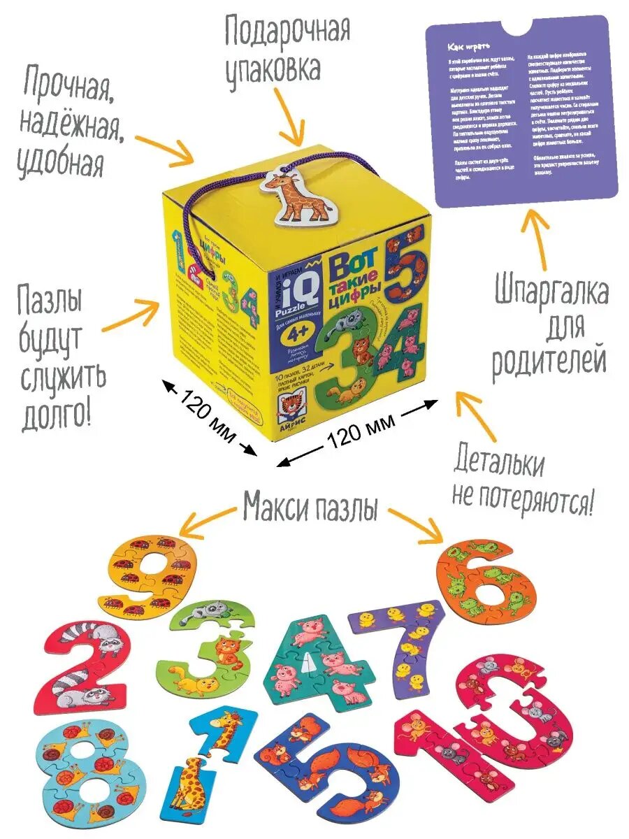 IQ пазлы крупные для малышей Цифры и счет Развивашки Игра информация: