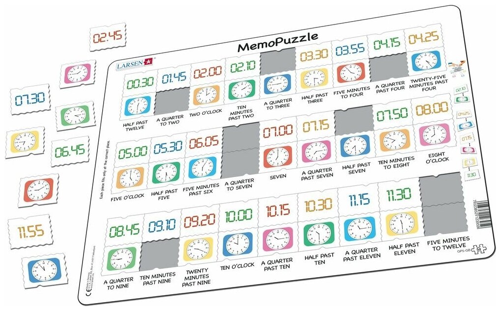 10 цен на Детские обучающие Пазлы Larsen "Мемопазл. Часы", 42 элемента, GP5
