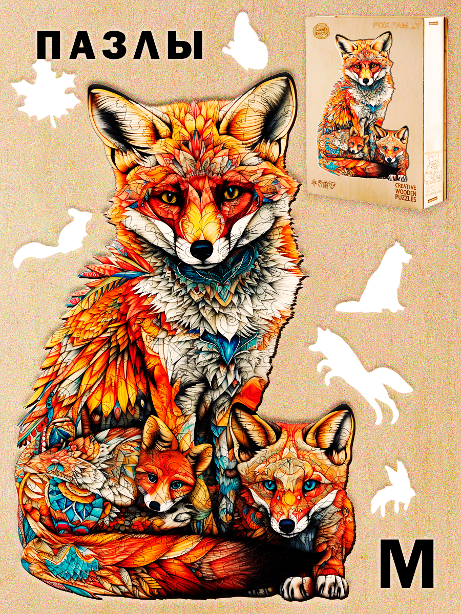 Деревянный 3D пазл Woodbests 6151-WP Лисья Семья M информация: