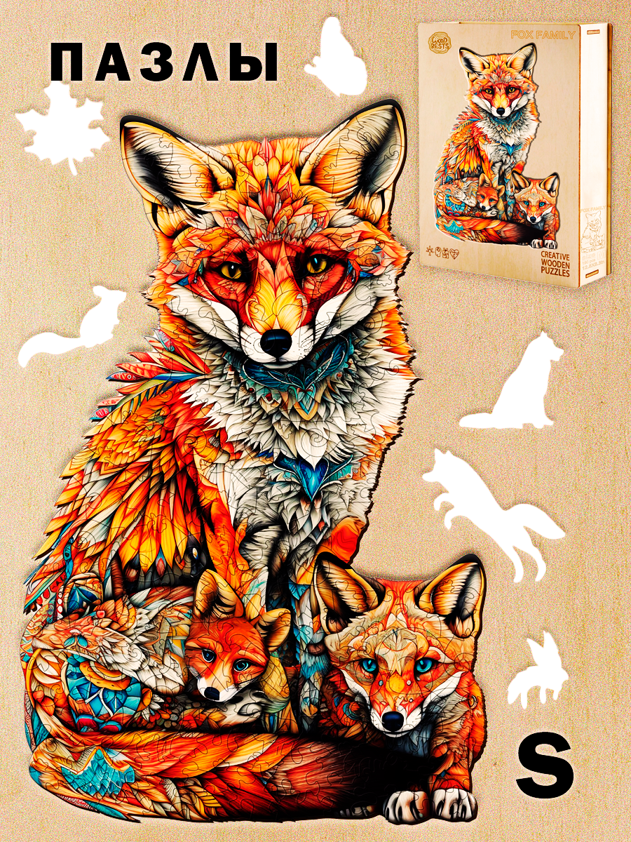 Деревянный 3D пазл Woodbests 6150-WP Лисья Семья S информация: