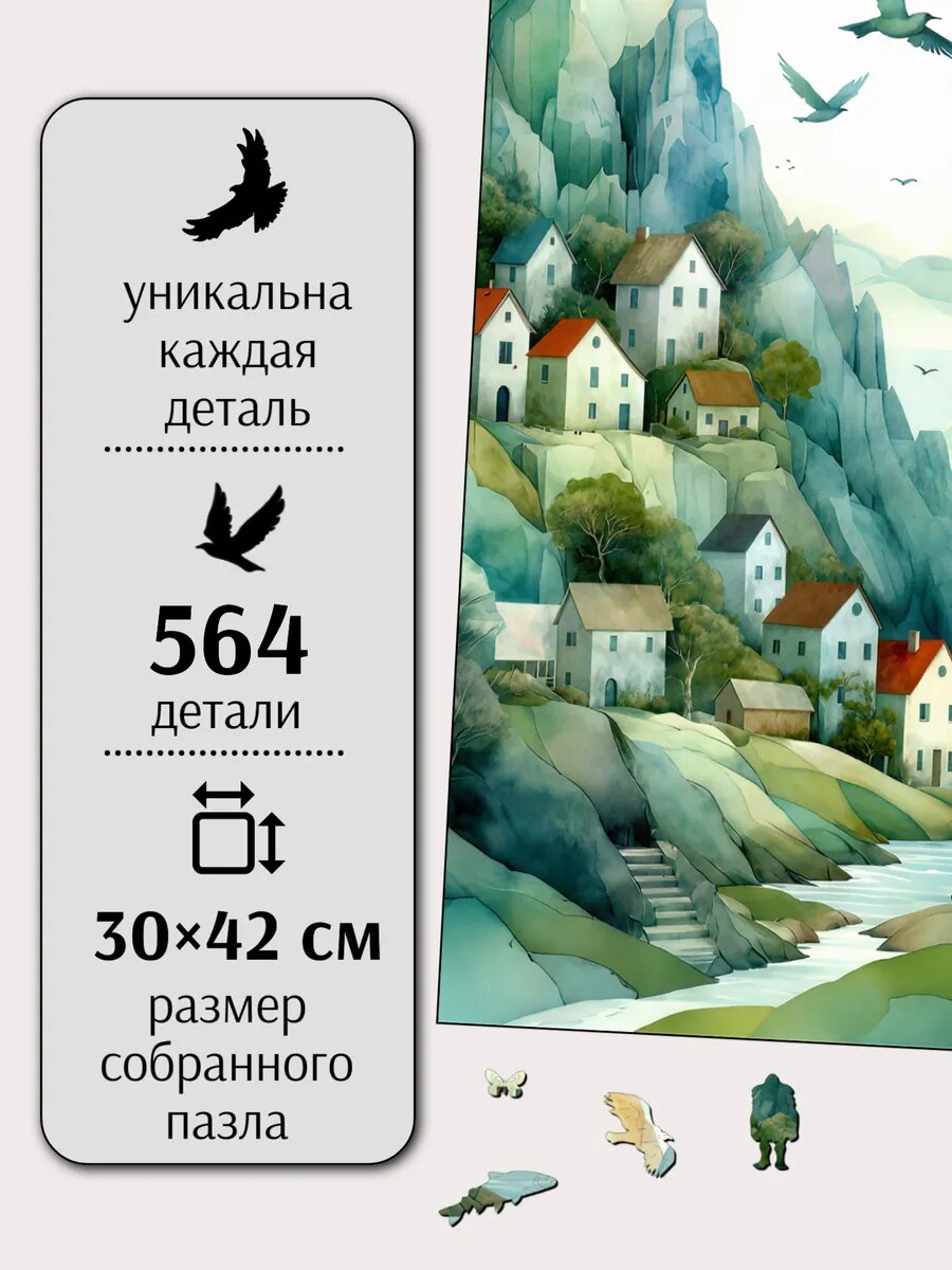 Деревянные пазлы для взрослых и детей "Деревня в горах" 564 детали, фигурные информация: