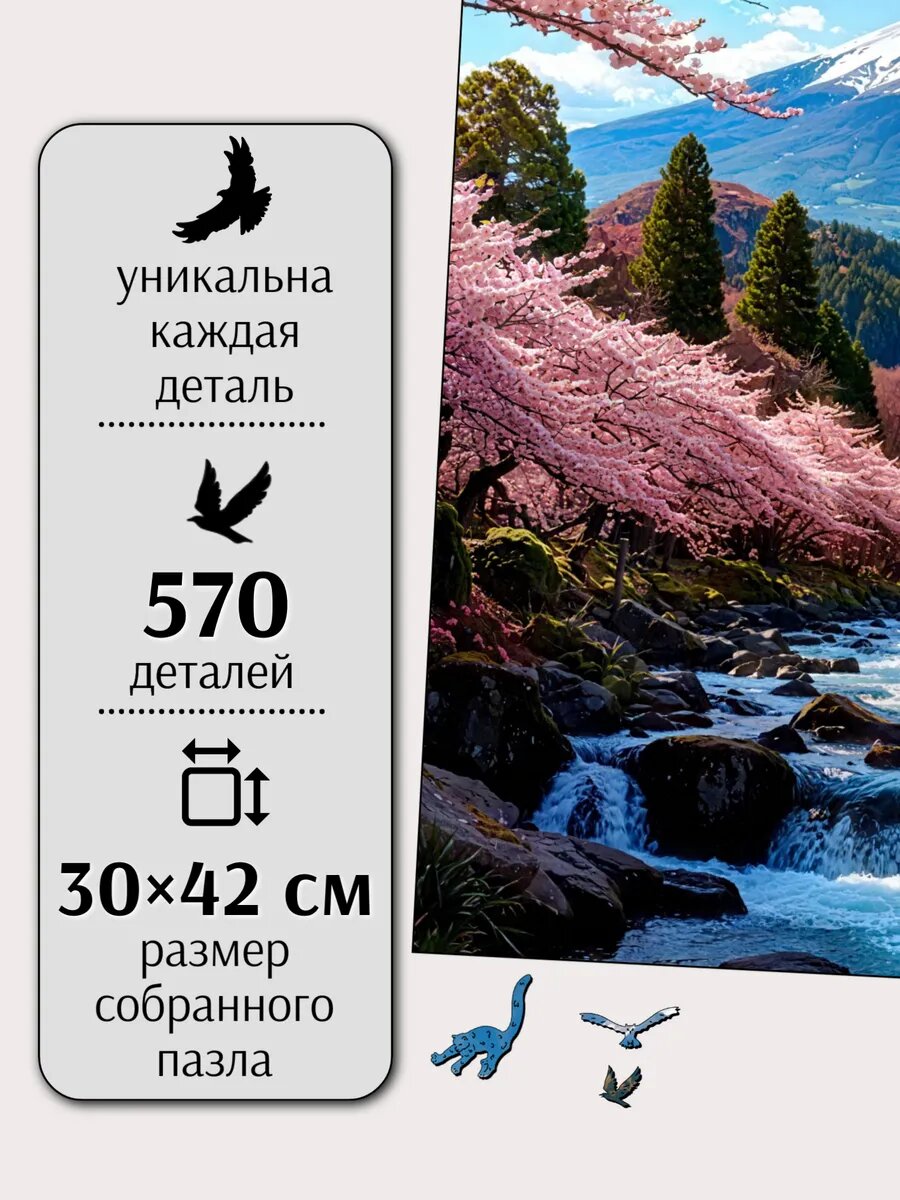 Деревянные пазлы для взрослых "Фудзияма" 564 детали/ Фигурные/ В подарок информация: