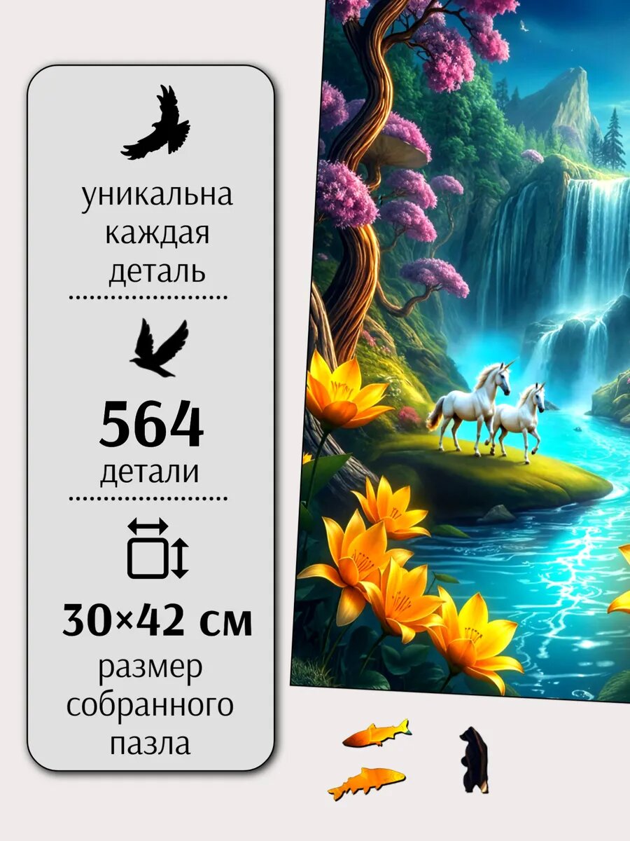 Фигурный пазл из дерева "Мифический лес" 564 детали, размер 42x30 см, в подарок для взрослых и детей информация: