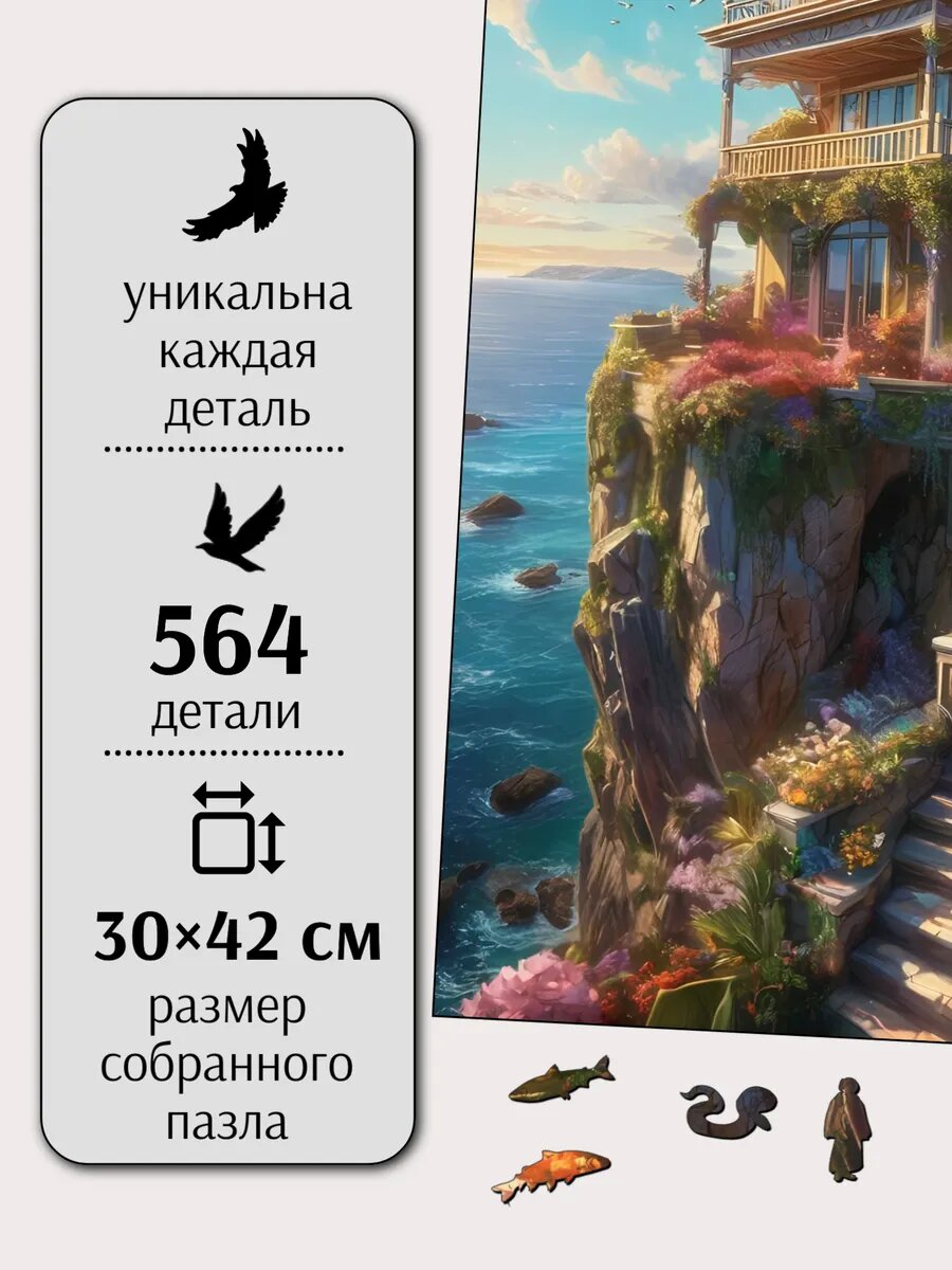 Деревянный пазл "Дом на скале", фигурный, 564 элемента, 42х30 см информация: