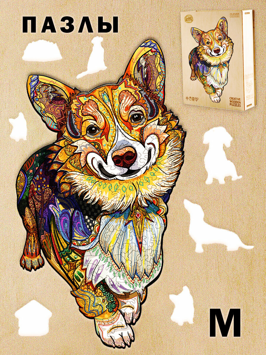 10 цен на Деревянный 3D пазл Woodbests 6106-WP Веселый Корги, размер M