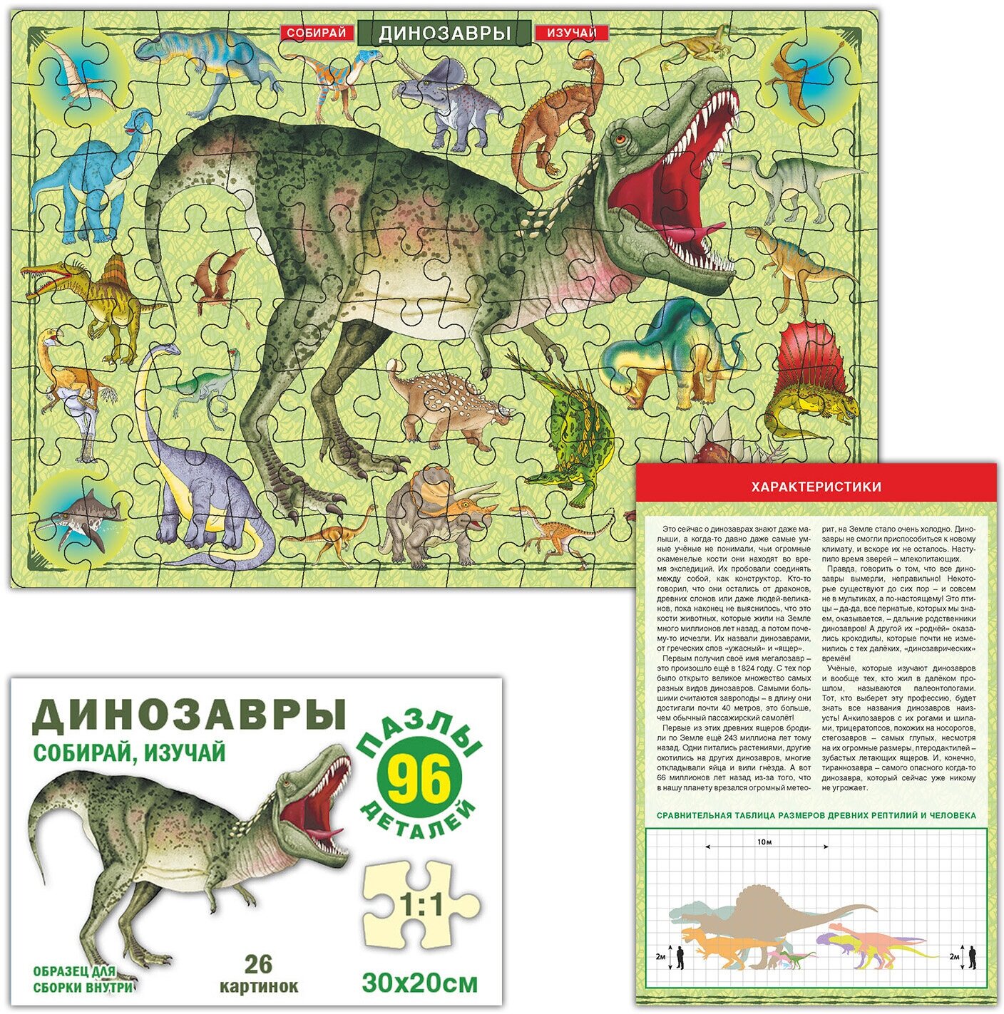 Динозавры. Собирай изучай. 96 элементов плюс справочная информация. В коробке. информация: