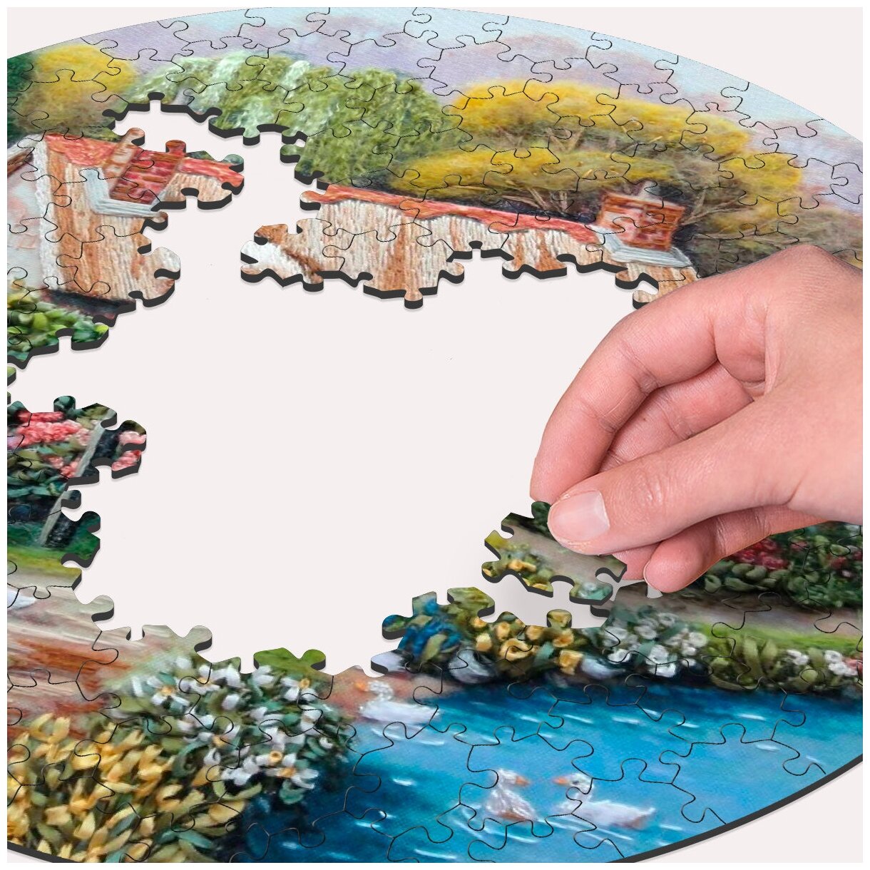 Отзывы на Деревянный пазл - картина на стену Домик с соломенной крышей A house with a thatched roof 30х30см 169 деталей