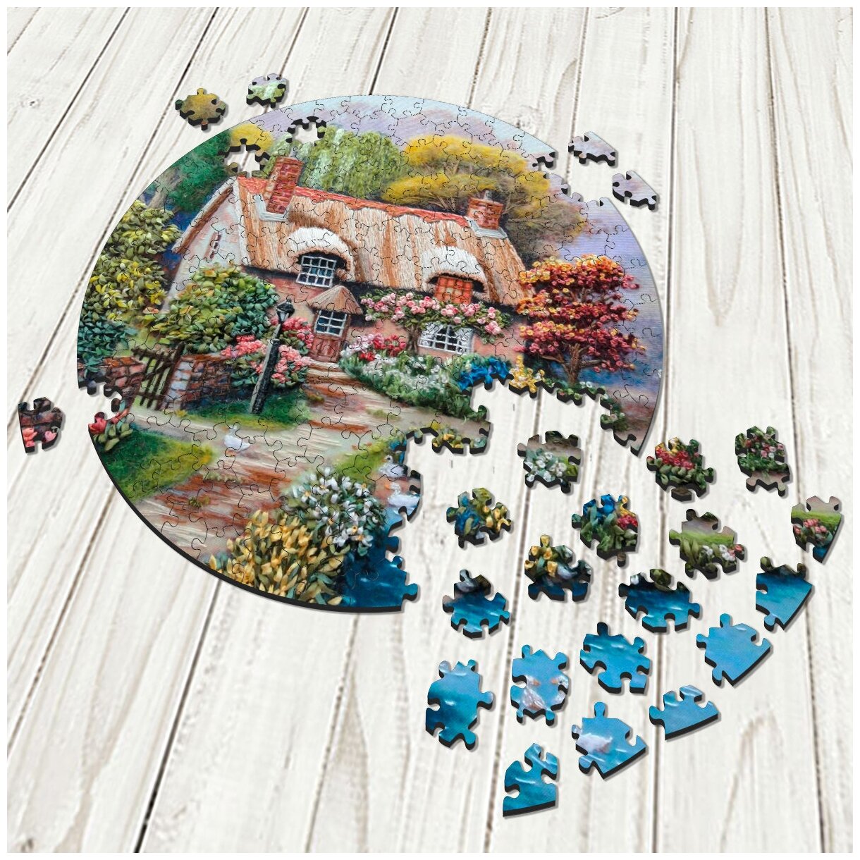 Деревянный пазл - картина на стену Домик с соломенной крышей A house with a thatched roof 30х30см 169 деталей информация: