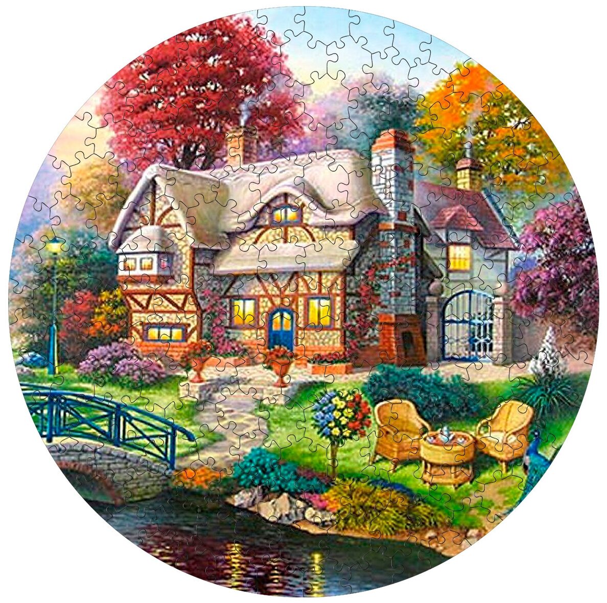 Деревянный пазл - картина на стену Домик с соломенной крышей A house with a thatched roof 30х30см 169 деталей