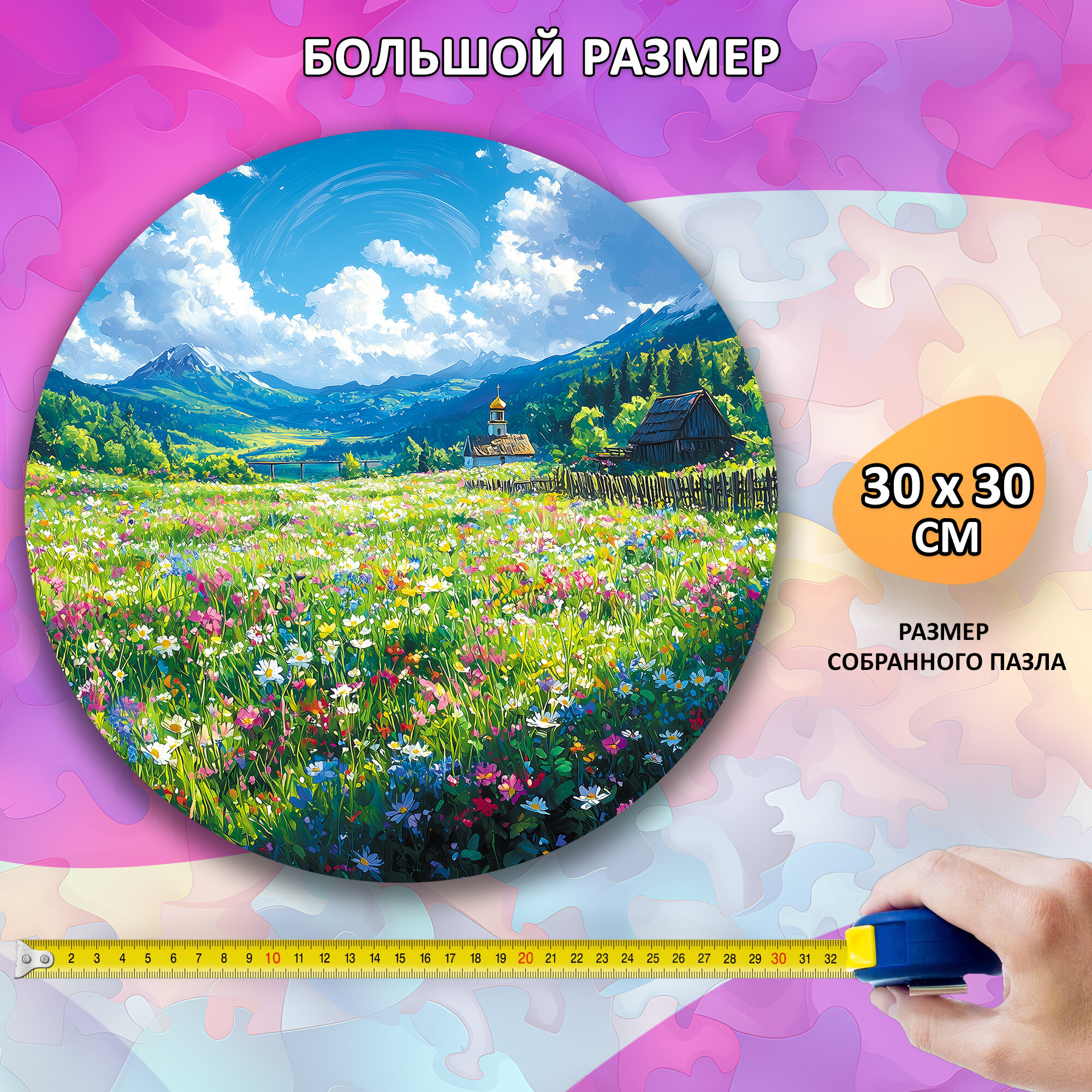 Деревянный пазл "Деревенский пейзаж", 30см, 220 деталей, коллекция "Русская природа"