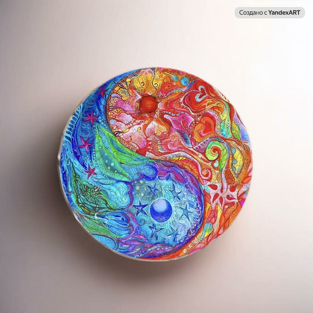Деревянный 3D пазл Woodbests Разноцветный Инь-Ян XL / 50 x 50 см / 700 деталей