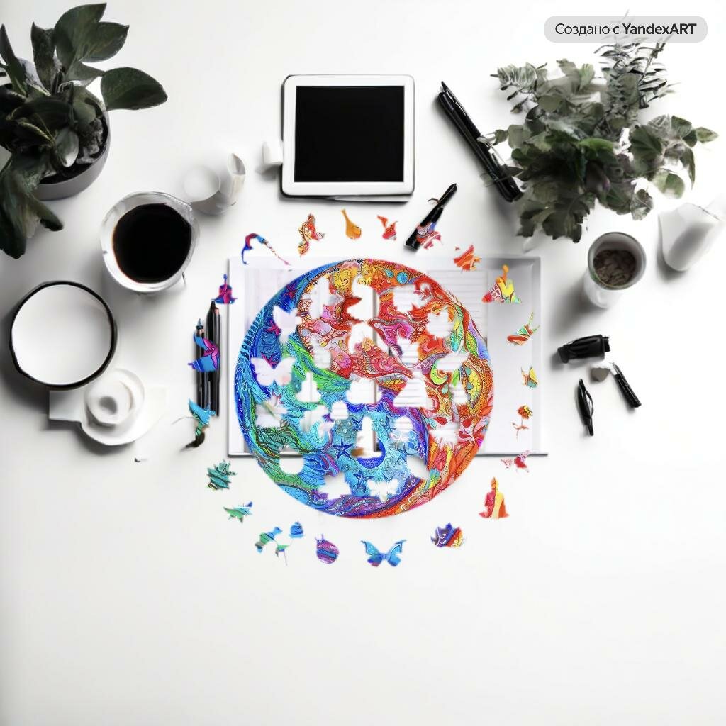 Отзывы на Деревянный 3D пазл Woodbests Разноцветный Инь-Ян L / 35 x 35 см / 338 деталей