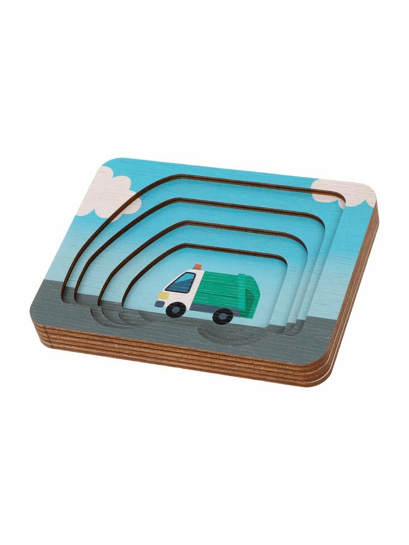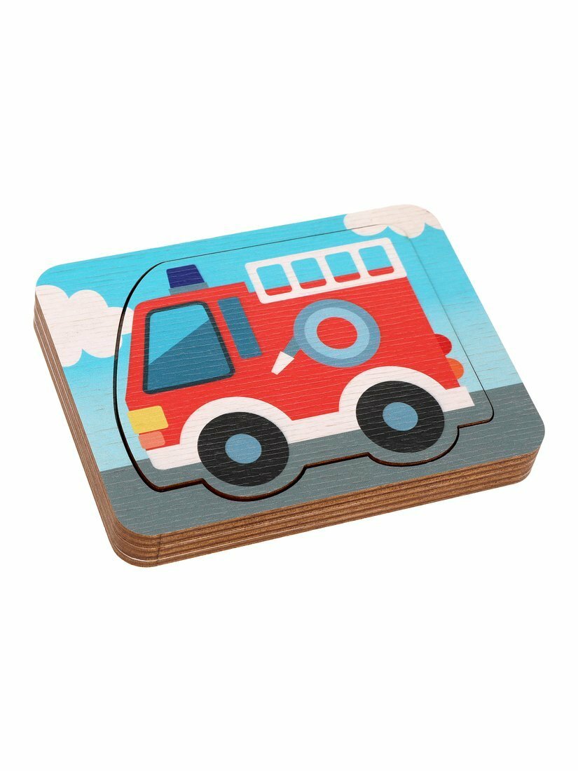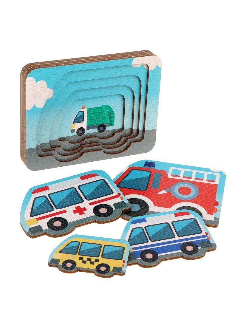 | Дополнительная информация | Пазл состоит из 4-х деталей, 4 слоев. Изображены: мусоровоз, такси, полицейская машина, машина скорой помощи и пожарная машина. |