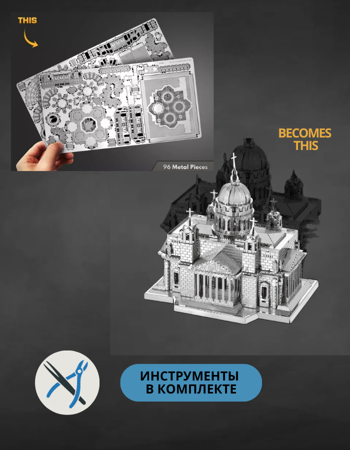 Металлический 3D пазл-конструктор "Исаакиевский собор" (14+) информация: