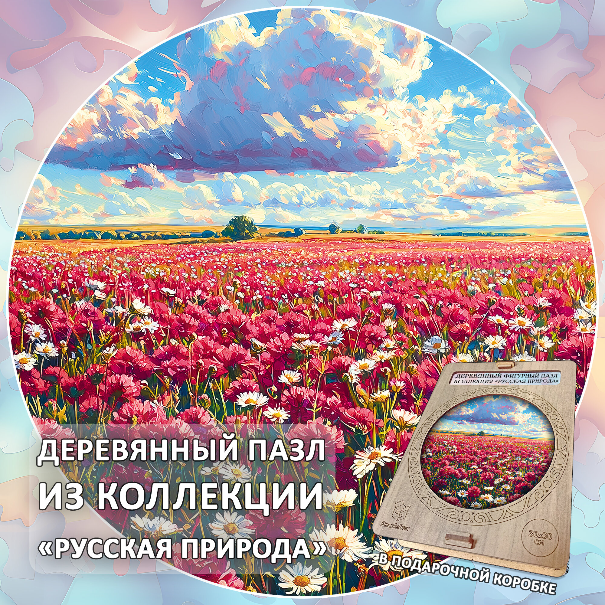 Деревянный пазл "Цветочная долина", 30см, 220 деталей, коллекция "Русская природа" информация: