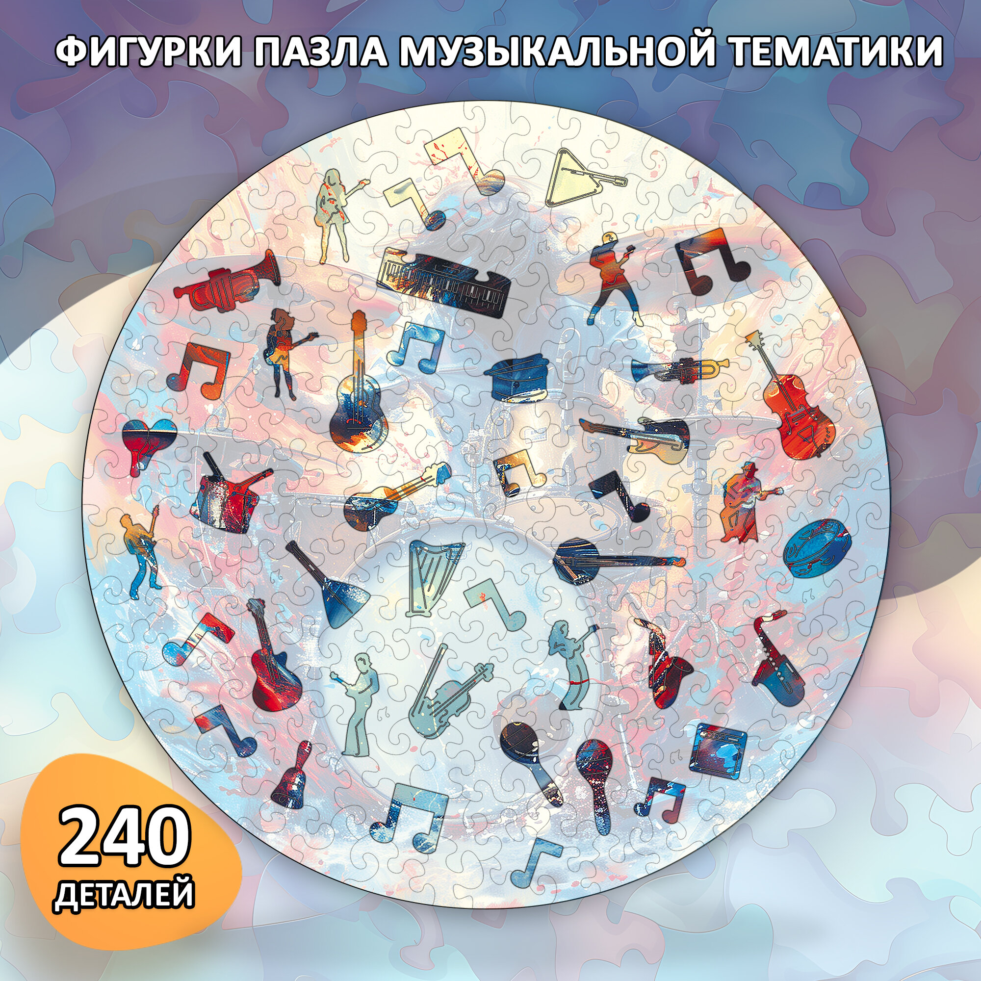 Деревянный пазл коллекции "Мир музыки" / 30х30см, 240 деталей / Подарок для взрослых и детей информация: