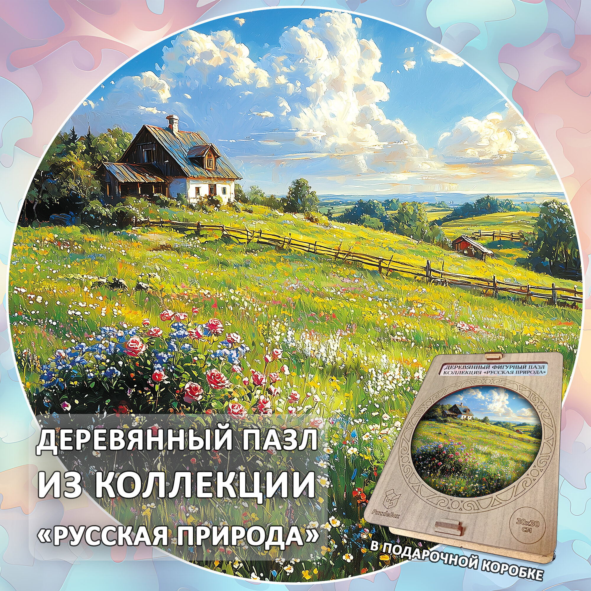Деревянный пазл "Деревенский пейзаж", 30см, 220 деталей, коллекция "Русская природа" информация: