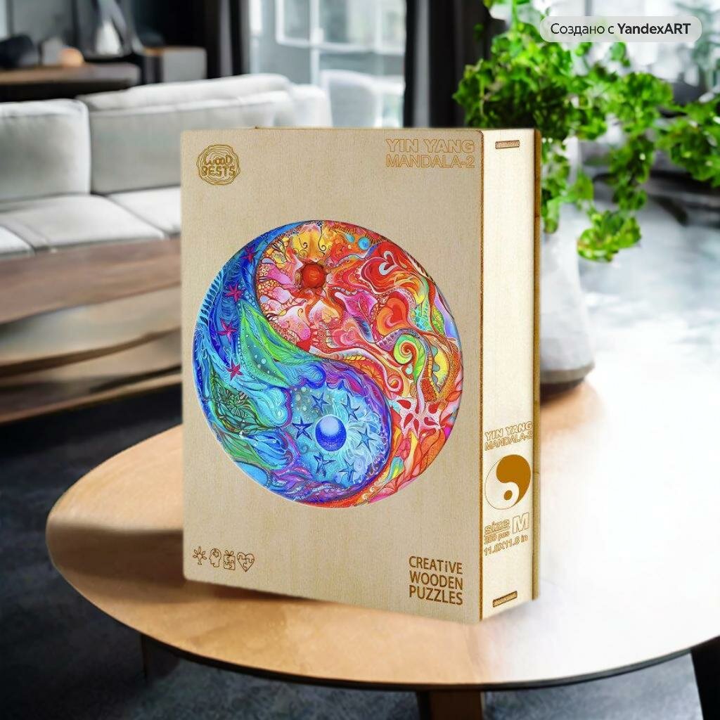 Деревянный 3D пазл Woodbests Разноцветный Инь-Ян M / 30 x 30 см / 200 деталей информация: