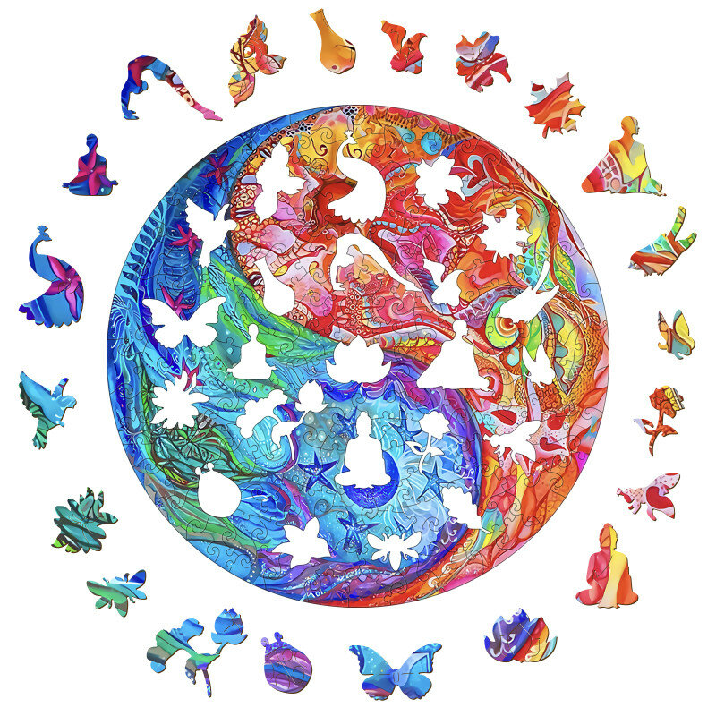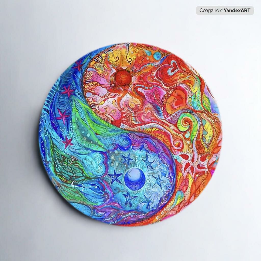 Деревянный 3D пазл Woodbests Разноцветный Инь-Ян XL / 50 x 50 см / 700 деталей