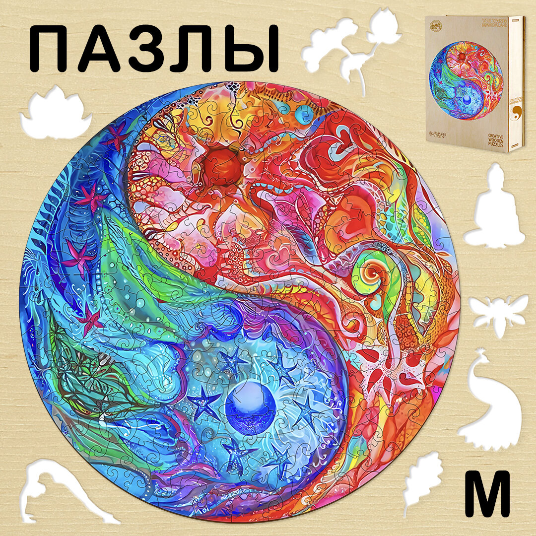 Отзывы на Деревянный 3D пазл Woodbests Разноцветный Инь-Ян M / 30 x 30 см / 200 деталей