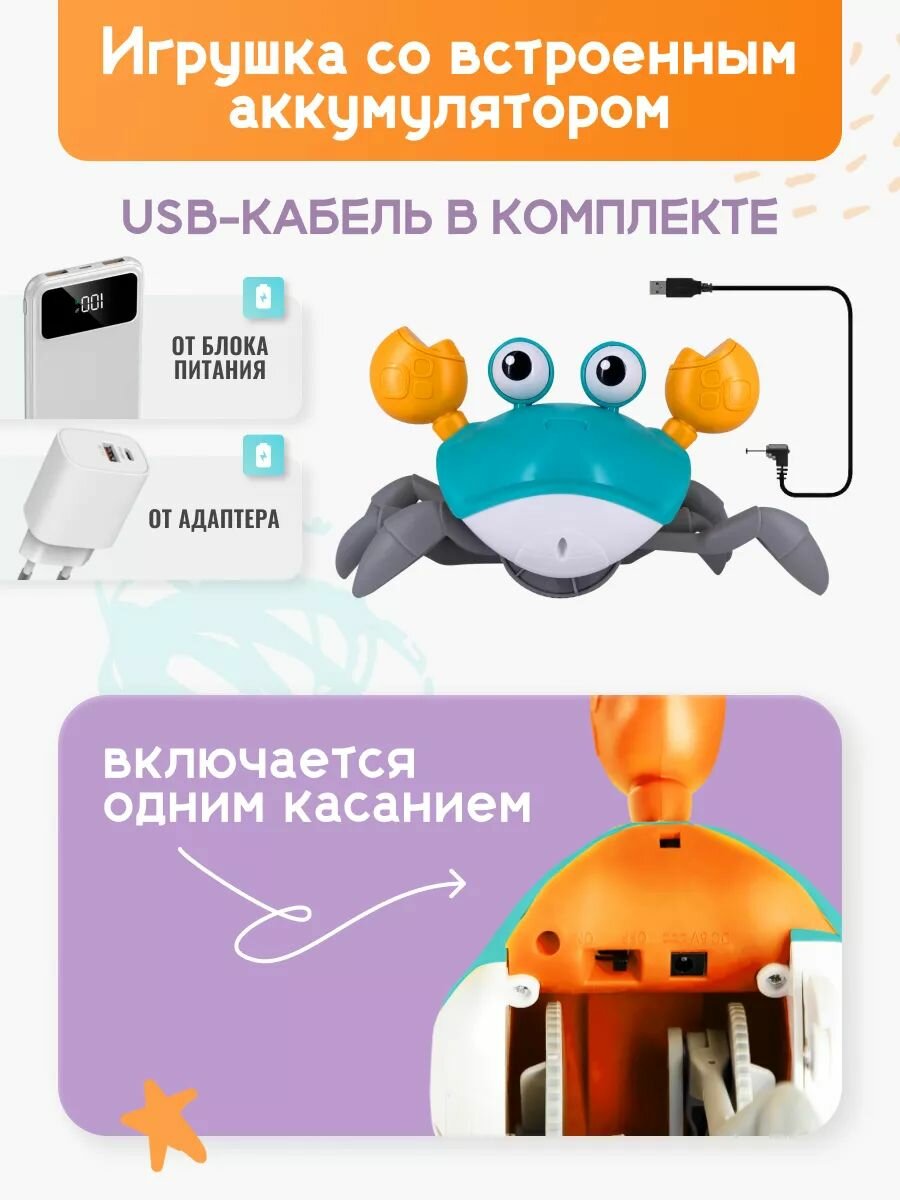Интерактивный бегающий краб музыкальная развивающая игрушка Синий информация: