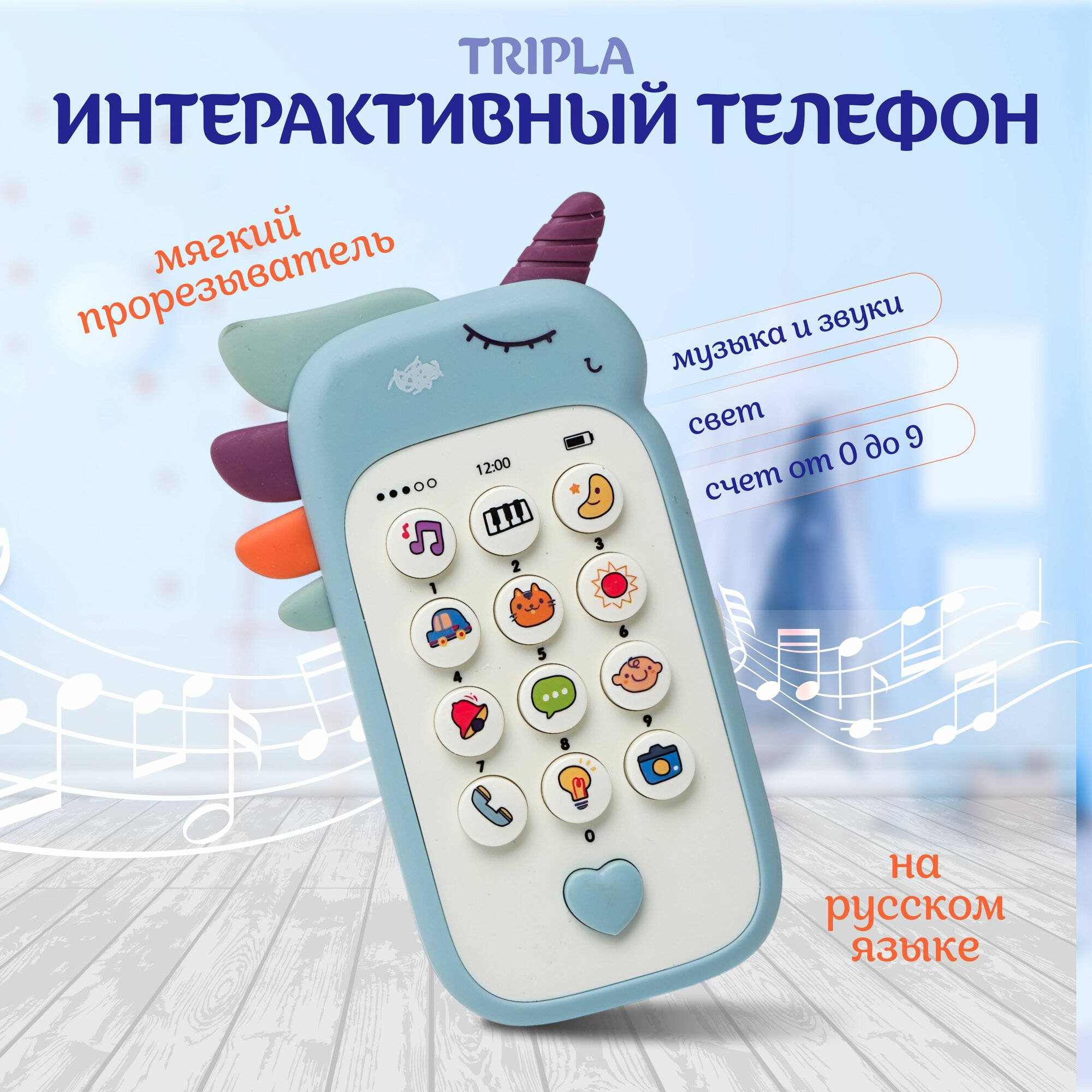 Отзывы на Телефон детский музыкальный. Развивающая игрушка Единорожка, игрушечный обучающий смартфон, более 12 различных звуков на русском языке, цвет голубой