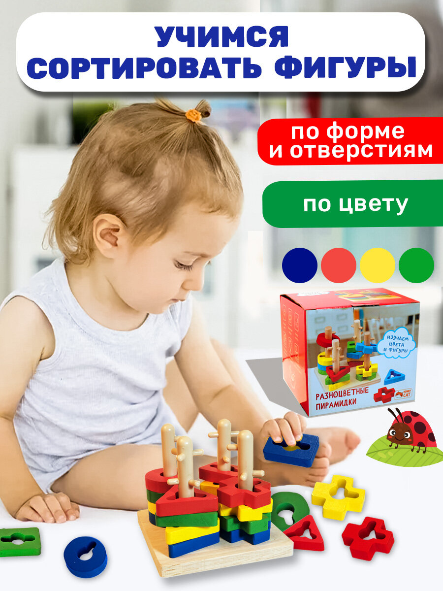 Отзывы на Пирамидка игрушка сортер. BONNY CAT. Развитие логики и моторики для самых маленьких. Натуральное дерево