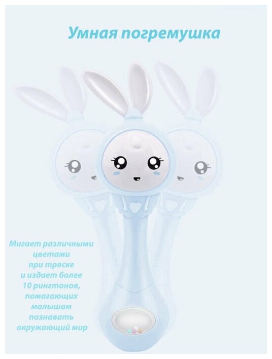 10 цен на Музыкальная интерактивная развивающая игрушка-погремушка Умный малыш зайчик, голубой