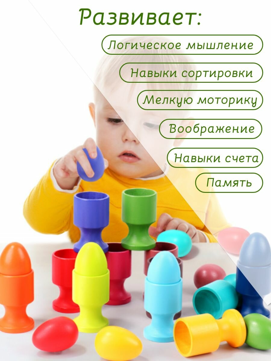 Сортер для малышей деревянный "Яйца в стаканчиках"/ Развивающая игрушка по Монтессори информация: