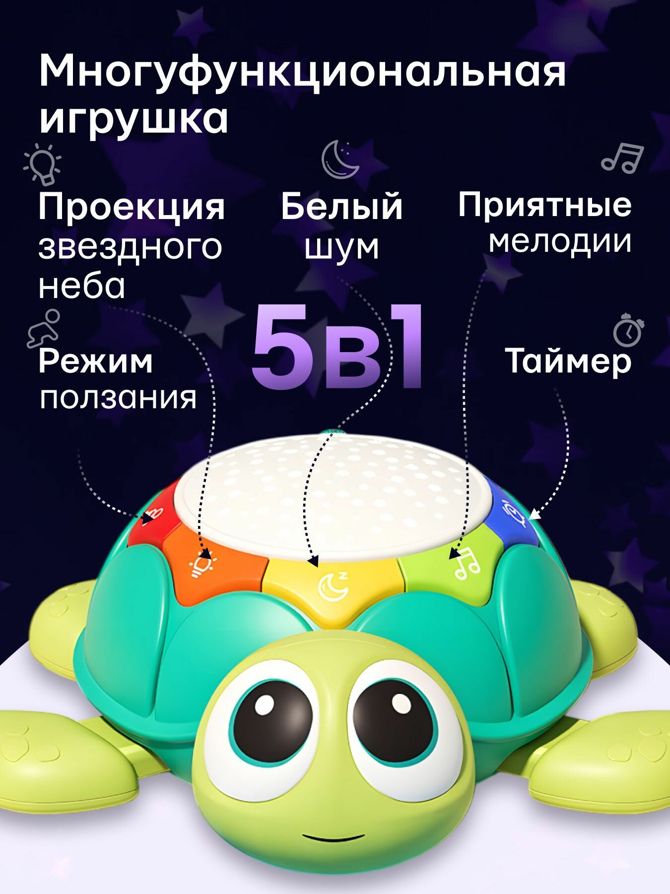 Интерактивная музыкальная игрушка для малышей ползающая черепашка - ночник. Подарок мальчику или девочке на день рождение 1 годик информация: