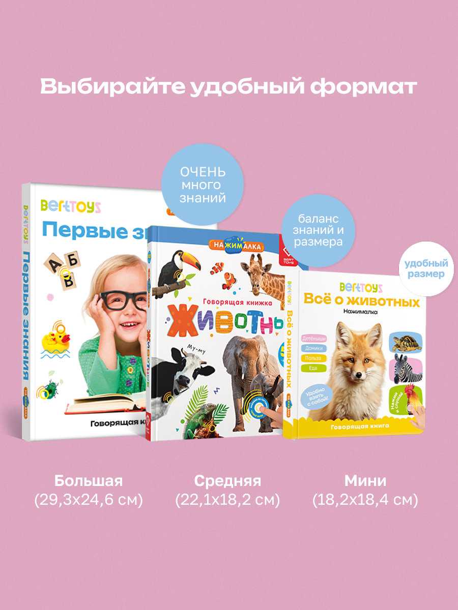 Интерактивная музыкальная говорящая книга для детей Нажималка – "Животные" от BertToys 2 685 ₽