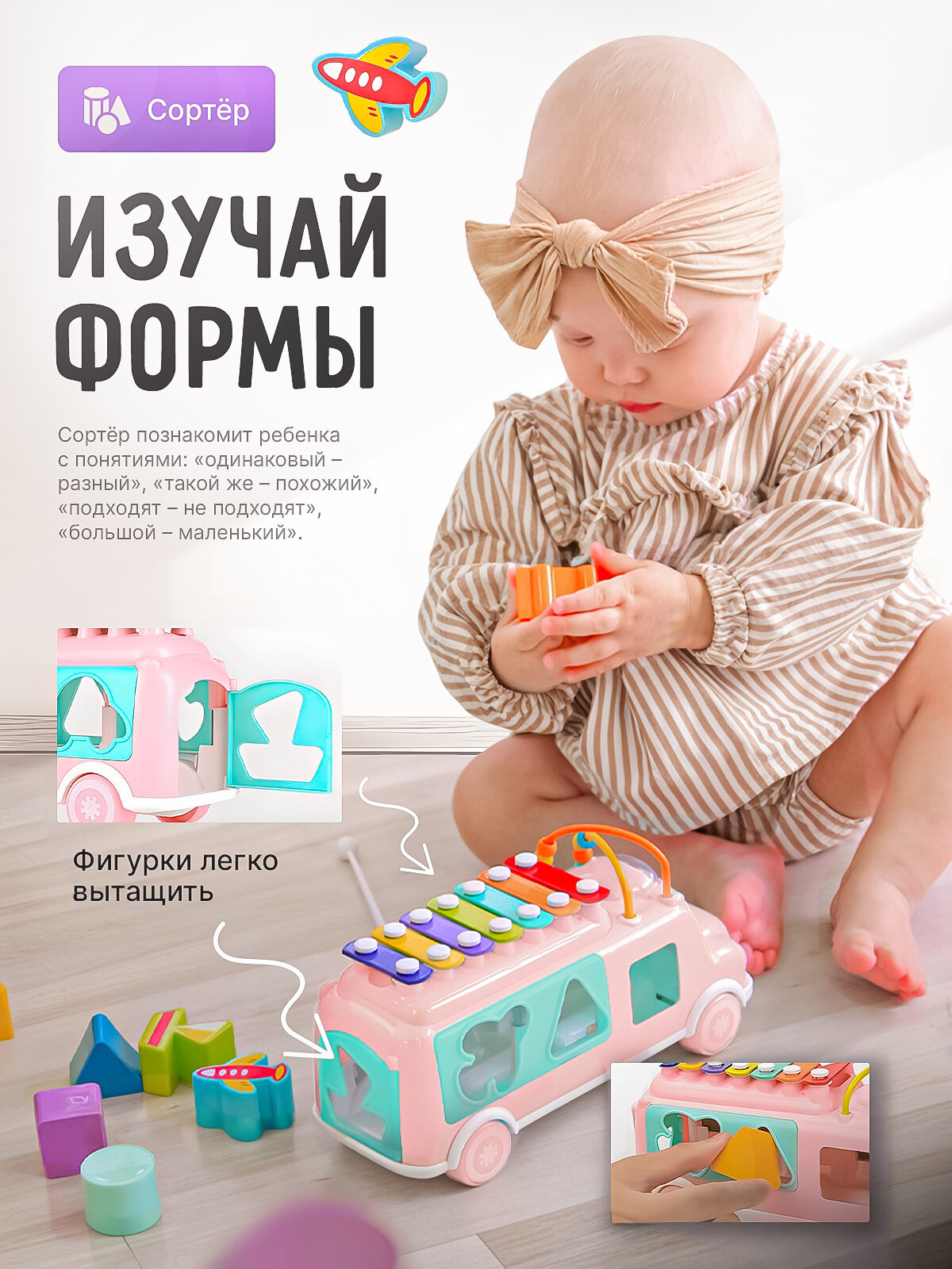 10 цен на Сортер для малышей развивающий. Автобус с ксилофоном