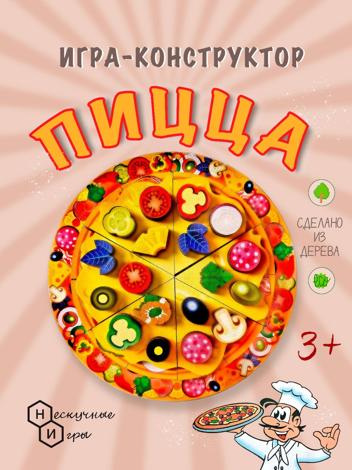 Отзывы на Развивающая игра "Пицца" дерево, 54 элементами, 5 слоёв, от 3 лет