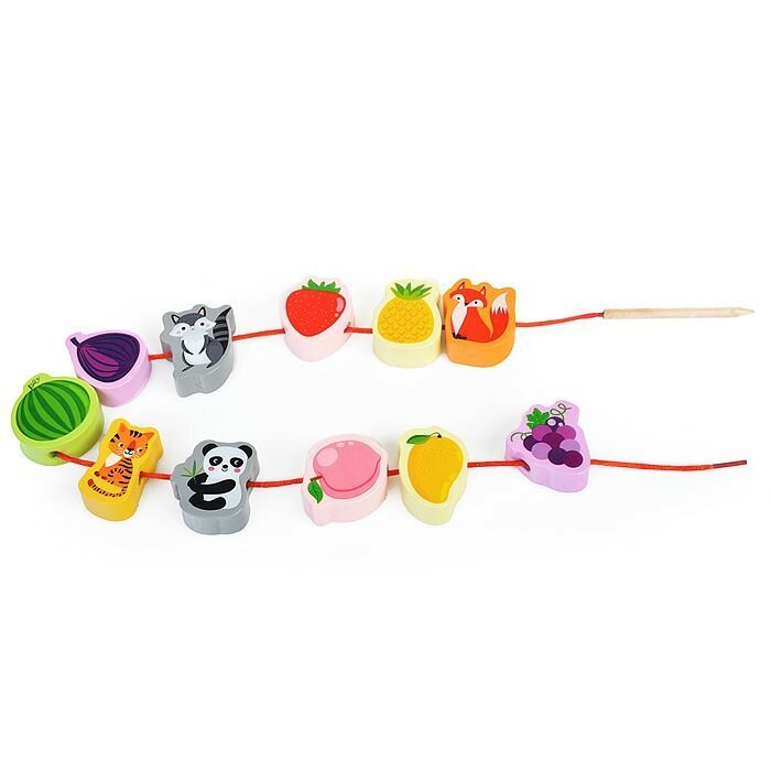 Шнуровка деревянная "Фрукты и дикие животные" 32 фигурки, шнурок 67 см. в пакете D1606-2 информация:
