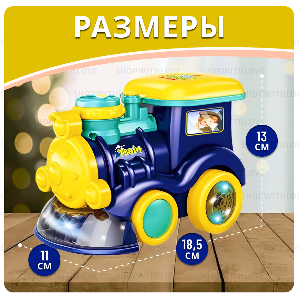 Интерактивная игрушка музыкальный паровозик, генератор мыльных пузырей, синий информация: