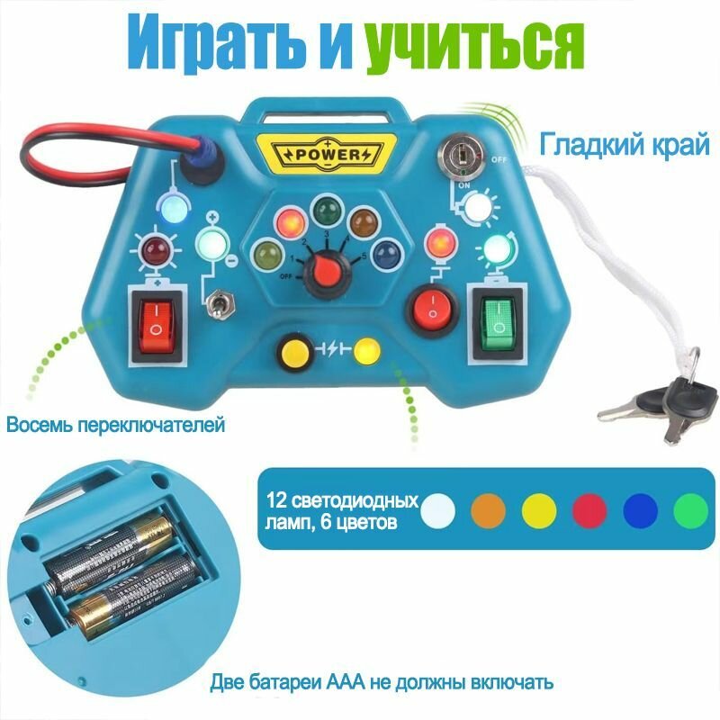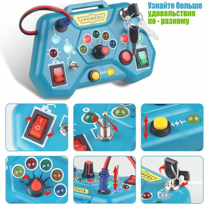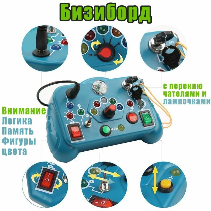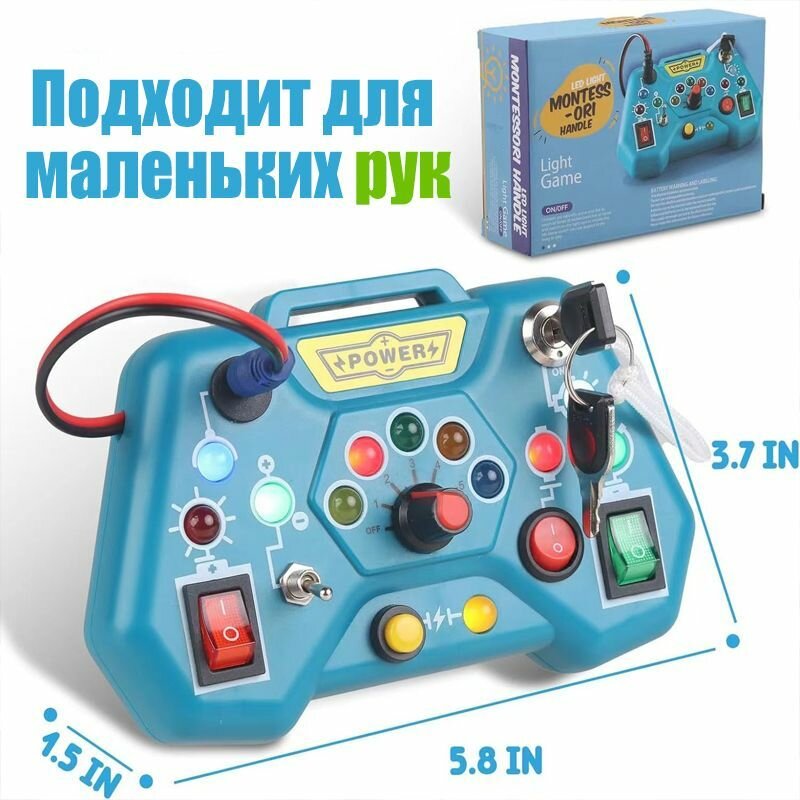 Детский бизиборд Монтессори с переключателями и лампочками информация: