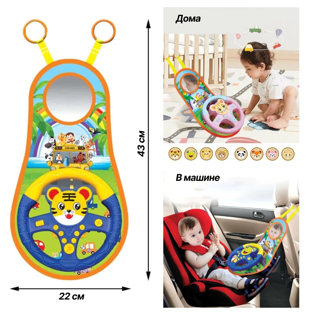 Игрушка музыкальный детский игровой руль с креплением в машину, русское озвучивание, звуковые и световые эффекты информация: