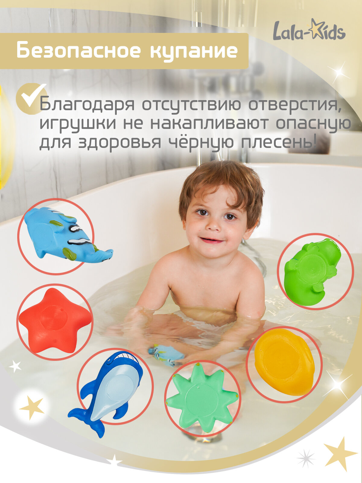 10 цен на Игрушки для ванной резиновые без отверстий LaLa-Kids рыбки набор из 6 шт