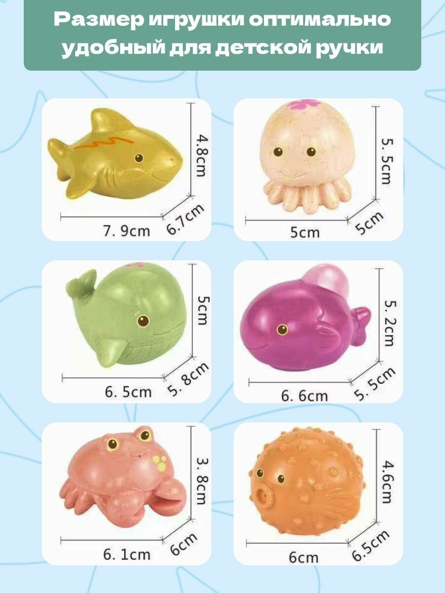 Игрушки для ванной (брызгалки) 6 штук Bonbella "Морские животные" из эко-материала информация: