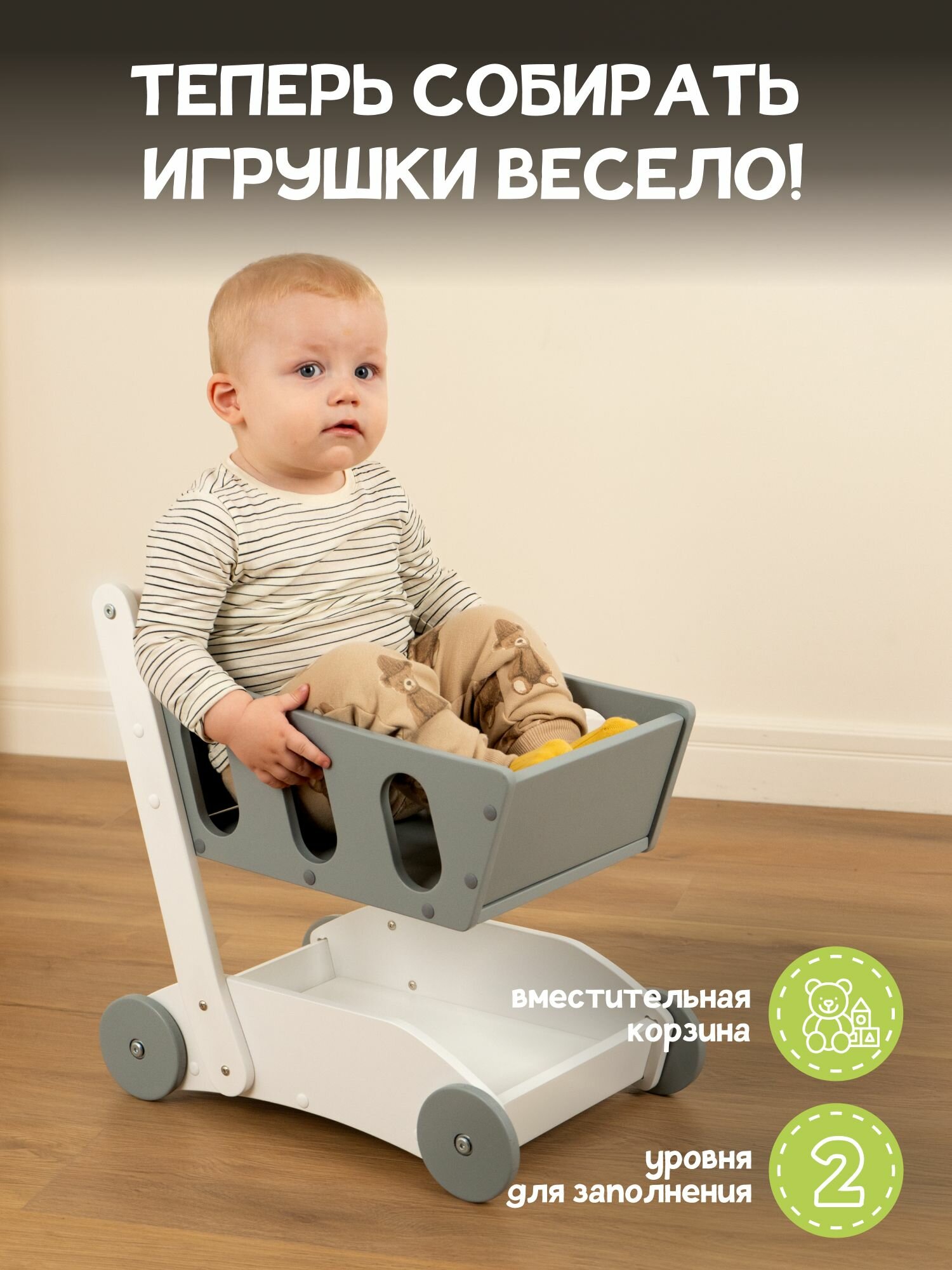 10 цен на Детская игровая тележка "КОРЗИНА" от "Pappado", цвет серый + белый, 30х46х48 см