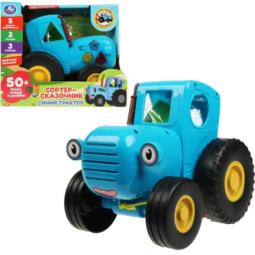 10 цен на Музыкальная игрушка каталка сортер Синий трактор на веревочке для малышей, 50+ звуков, песни, сказки и загадки, свет, 19 х 13 х 15,5 см, HT1262-R
