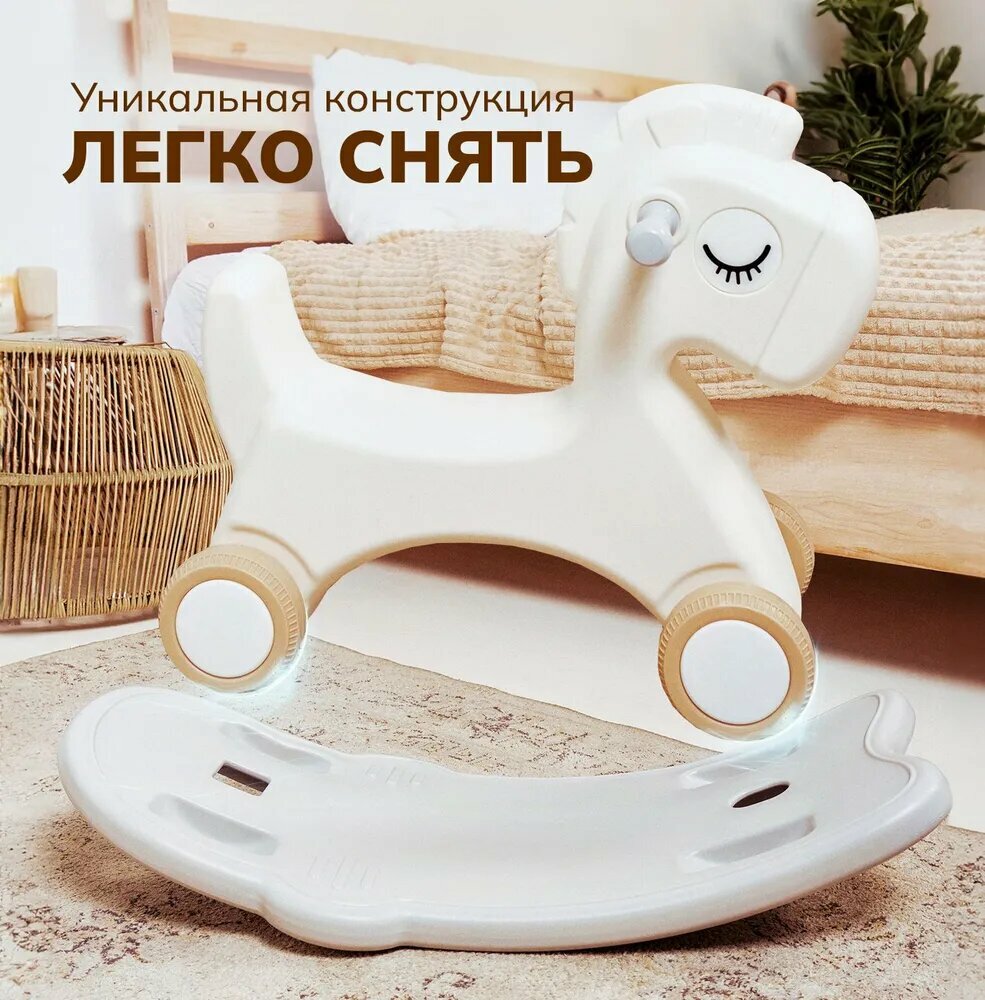 Лошадка-качалка-беговел ALEXCARE KIDS для детей, для дома и улицы, цвет молочный/серый