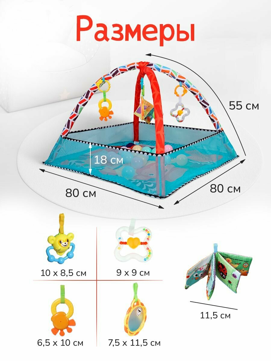 Коврик-манеж с бортиками развивающий с игрушками и шариками "Весёлый малыш-2" для новорожденных, 80х80х55см. информация: