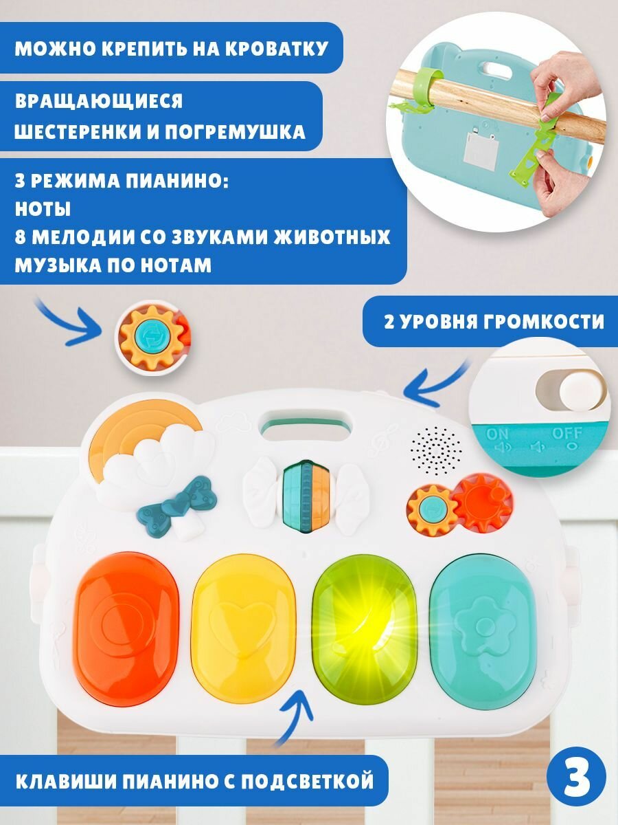 Развивающий коврик с пианино тотоша музыкальный ковер с дугой и съемными игрушками крафт