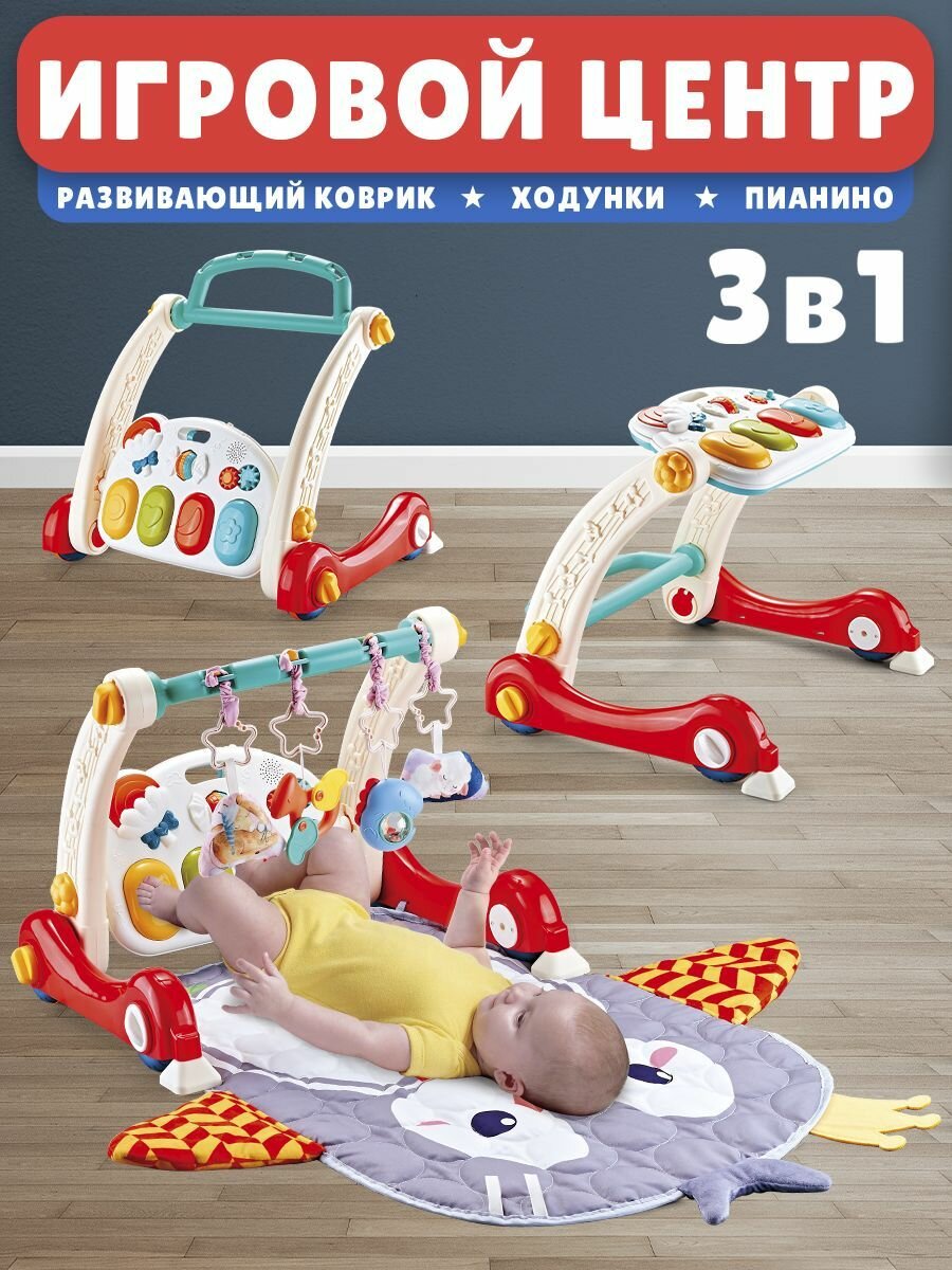 10 цен на Каталка ходунки, развивающий коврик 3 в 1