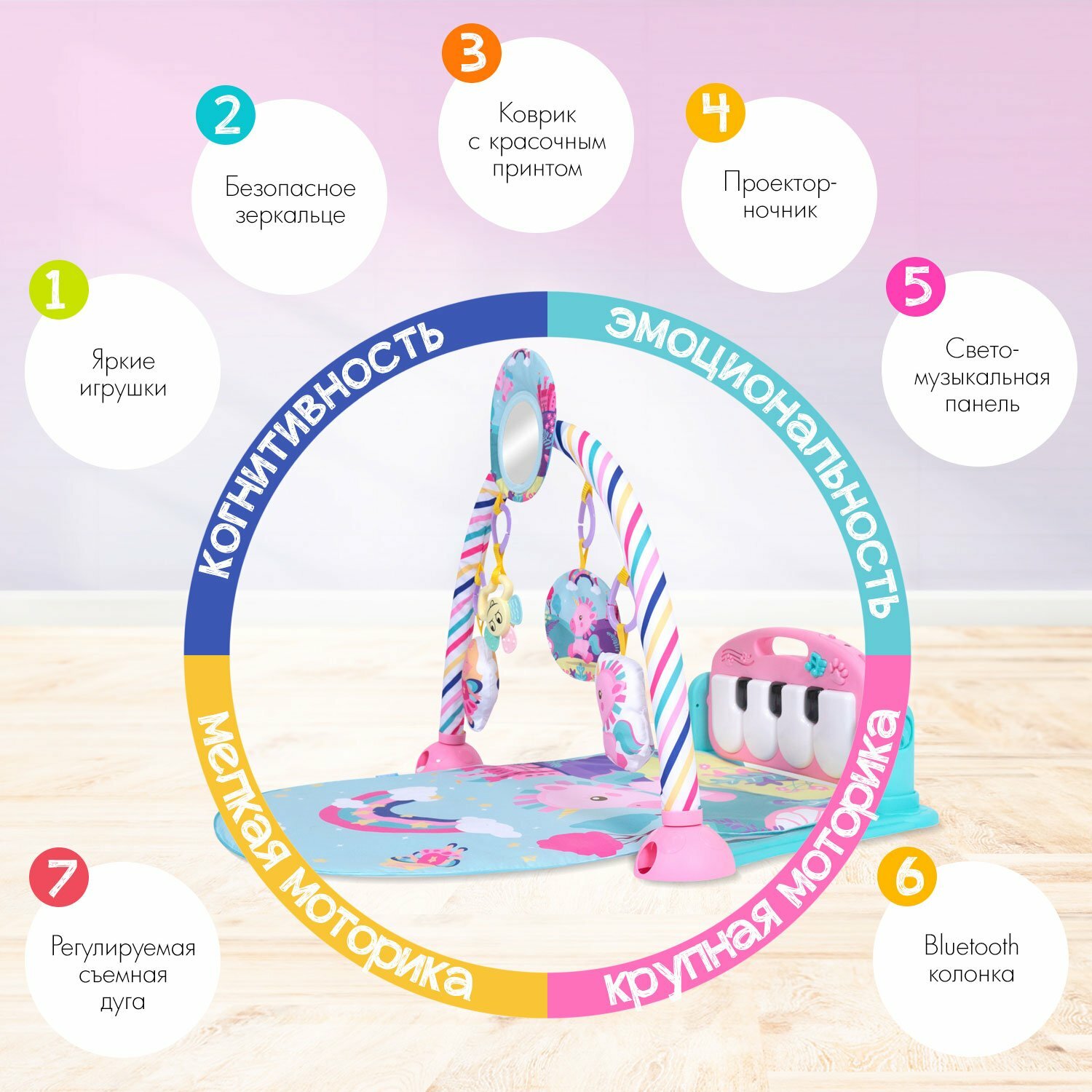 Музыкальный коврик ZABIAKA развивающий со звуком, розовый