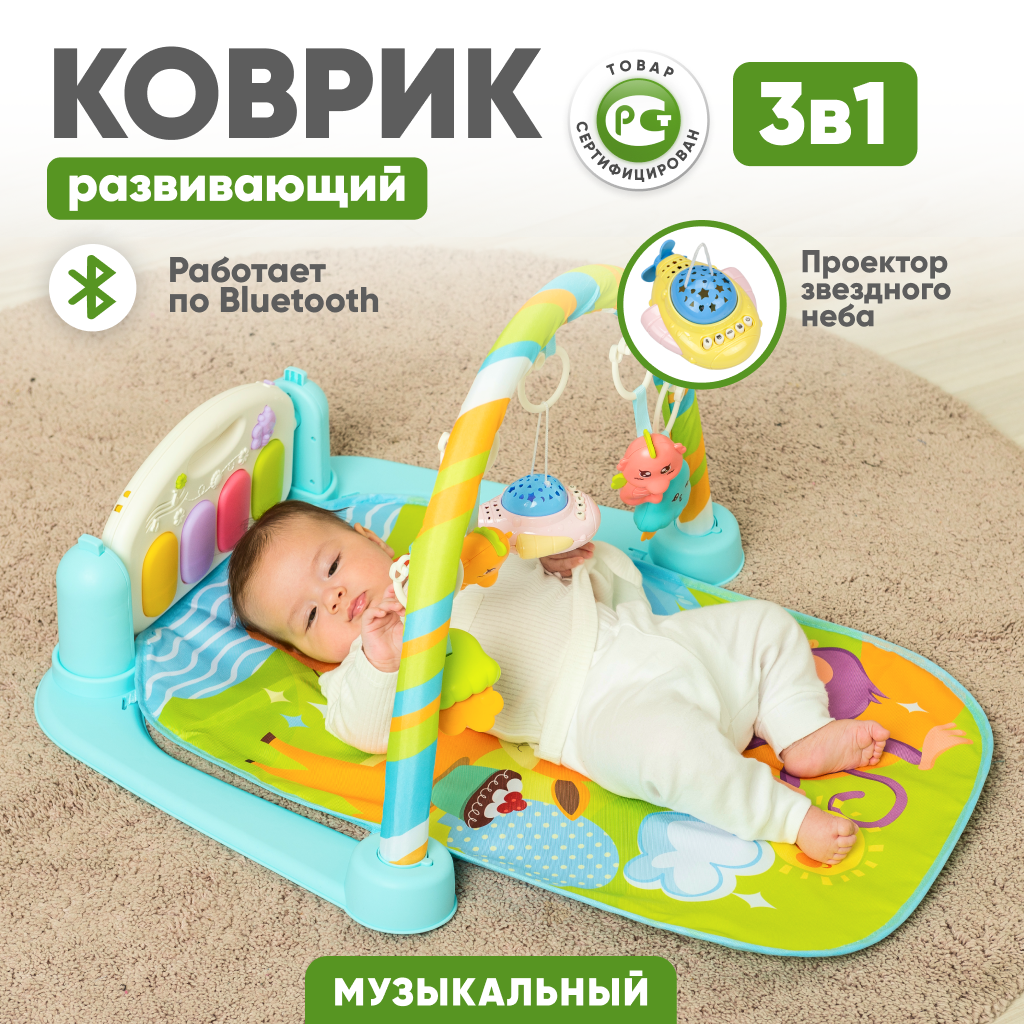 Детский развивающий музыкальный коврик с дугами для новорожденного с пианино, проектором и Bluetooth