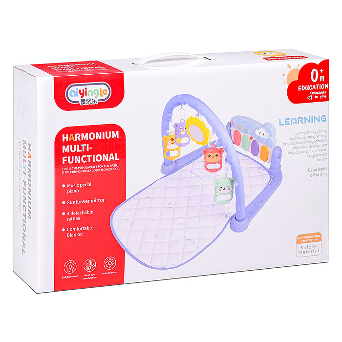 Коврик мягкий детский игровой развивающий для малышей Oubaoloon BBL-665 с подвесными игрушками, в коробке