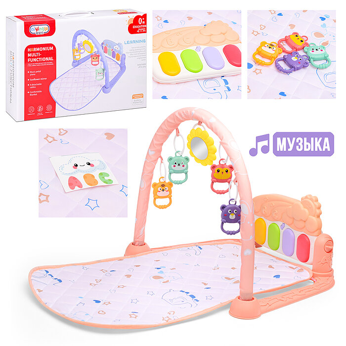 Музыкальный коврик ZABIAKA развивающий со звуком, розовый